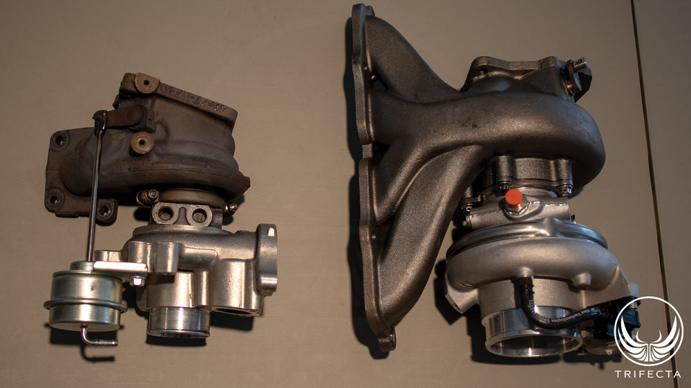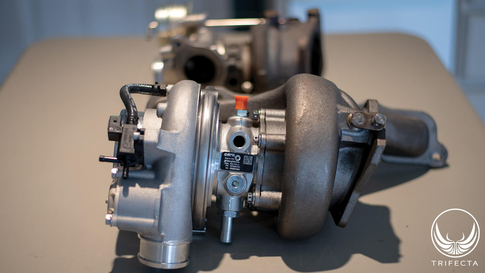 TRIFECTA has been working on a Borg Warner EFR 7670 swap for the RWD Alpha chassis vehicles for some time. The most recent official dyno numbers we've seen on a 2017 Camaro with the 8sp automatic transmission is about 470WHP, but unofficially we've seen as high as 490WHP, on 92 octane pump gas.