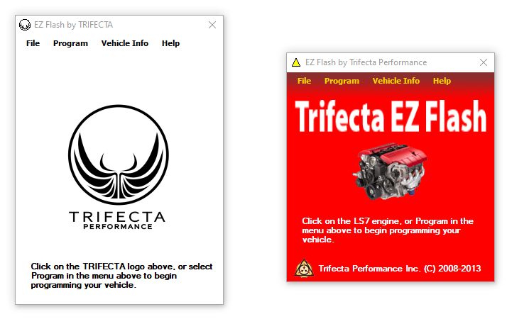 With the exception of in-person dyno tuning, all TRIFECTA products are installed using a Windows based application that runs on a Windows PC, or inside a Windows virtual machine (VM). This application is called EZ Flash, and the splash screen will look as follows:
