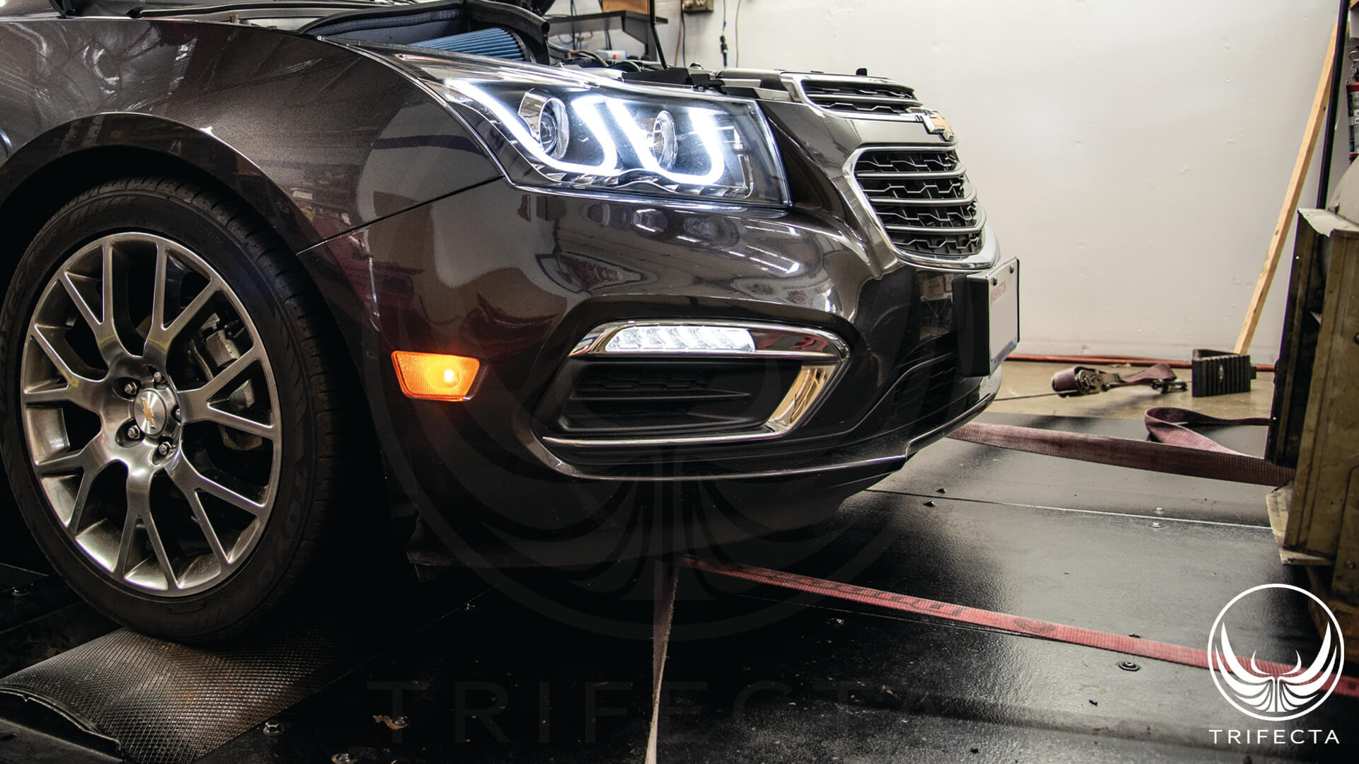 QuoteWe are excited to introduce our new intake system for the 1.4L turbocharged Chevy Cruze. You won’t find a higher quality or better performing intake on the market. We have designed this intake using parts from our already proven Sonic intake system, and combined them with a new heat shield specifically built for the Cruze engine bay. Our intake does a fantastic job of keeping out power robbing heat by surrounding the air filter with an aluminum heat shield equipped with an outer rubber gasket that makes contact with not only the interior panels of the engine bay, but also extends upward to seal against the hood when closed. Since hot air rises, having a heat shield that seals against the hood to create a barrier, ensuring the best results possible. This barrier blocks out the hot air trapped along the “ceiling” of the engine bay, and allows cooler denser air to be drawn in instead.
