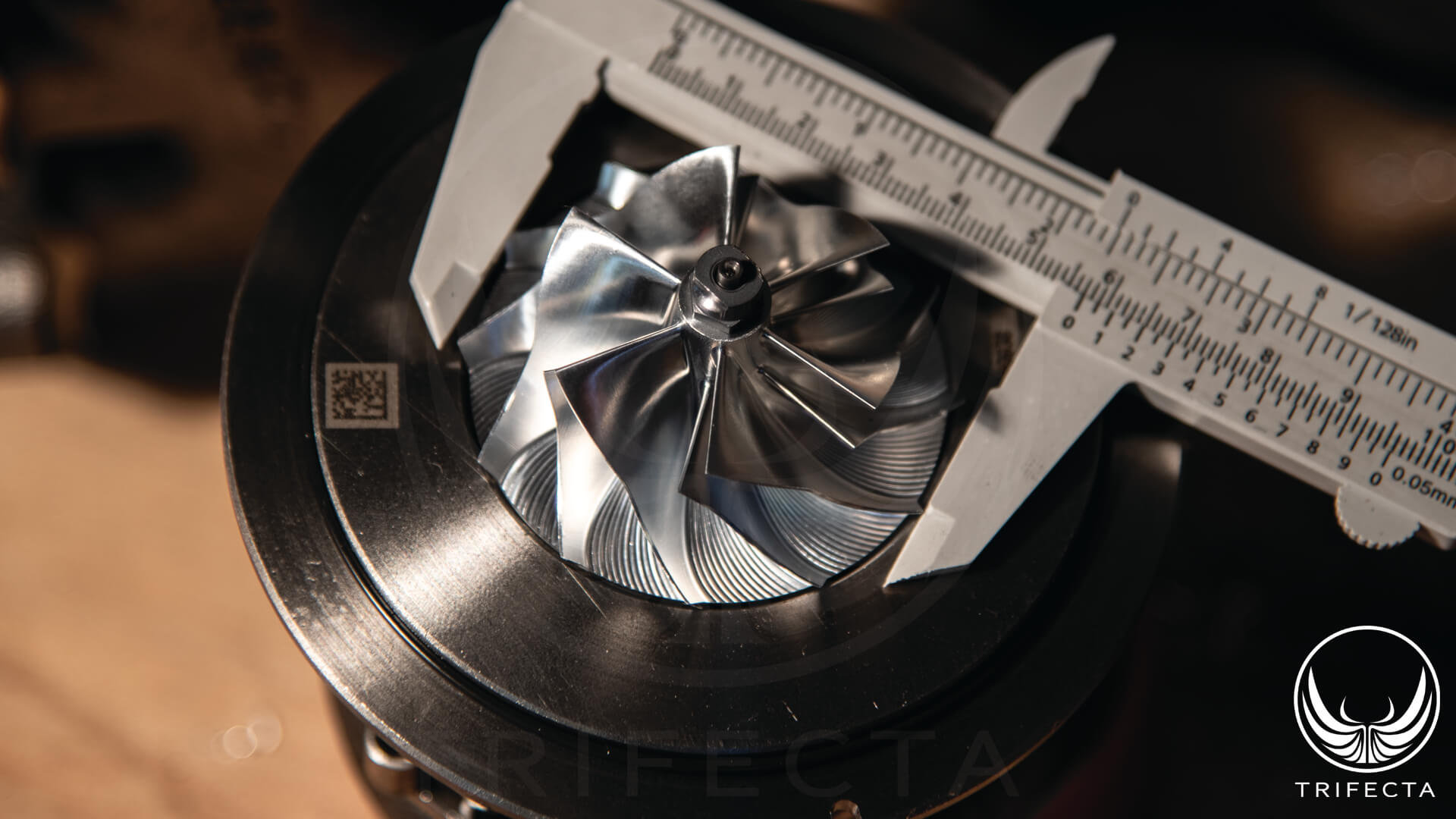 Compressor wheels (compared to turbine wheels) are relatively easy to make bigger. In most cases, you take a block of billet aluminum and cut a new compressor out of it. Turbine wheels, on the other hand, are much more challenging (and expensive) to make because they need to be made out of materials that can tolerate the excessive heat of the exhaust stream.