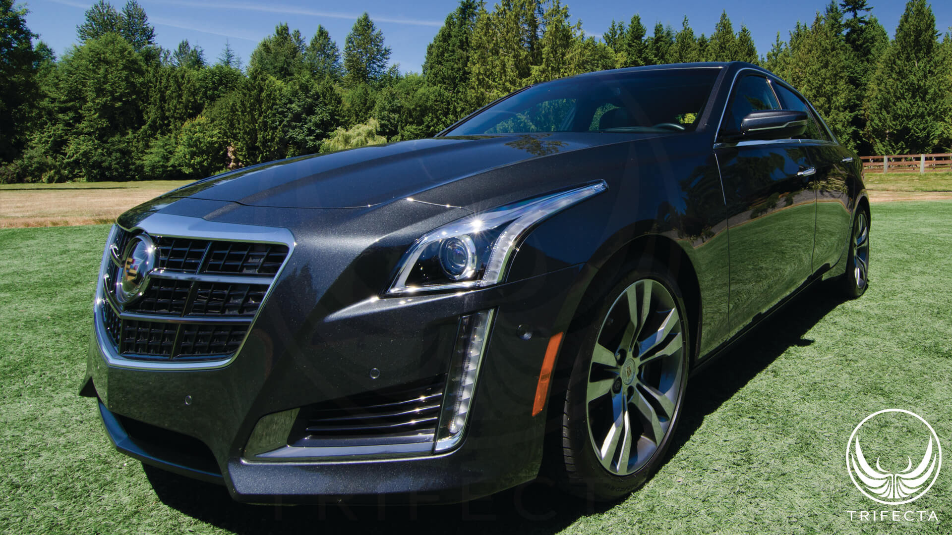 TRIFECTA presents: the "fastest Cadillac CTS V-Sport in North America" (as of January 24th 2014). The TRIFECTA Performance Cadillac CTS V-Sport LF3 MY2014 powertrain calibration is an easy to install software performance recalibration with an EZ Flash cable device that will yield estimated gains of up to +81 ft-lbs and +74 WHP to a completely stock Cadillac CTS V-Sport LF3 MY2014 (fuel quality requirements must be met). With linear and immediately responsive power delivery, all OE diagnostics and emissions readiness checks are present and function per OE specifications.