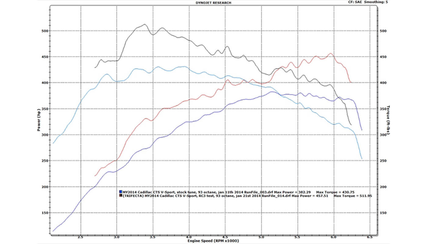 I am so impressed with the tune by trifecta performance. My 2014 cts v premium not only being extremely awesome and quick with awesome power I read alot of reviews about the tune before purchasing 12/01/2019 and all the reviews were on point. So I took a leap of faith and besides being extremely easy to apply the tune it has outrageous gains in power and torque actually I'm speechless and so amazed. The response time from trifecta when a question or concern is simply on point. Anyone looking to do a tune an unleash the beast definitely want go wrong from tour  mode it's a beast and remains at the stock settings although mine appears to be a tab more responsive but settle but going to sport or track it just simply changes to a monster so proud of my ride you can flat out tell the difference in the shifting of the transmission to to power and torque the turbos really spool up and just get wicked you definitely cant go wrong this is real talk