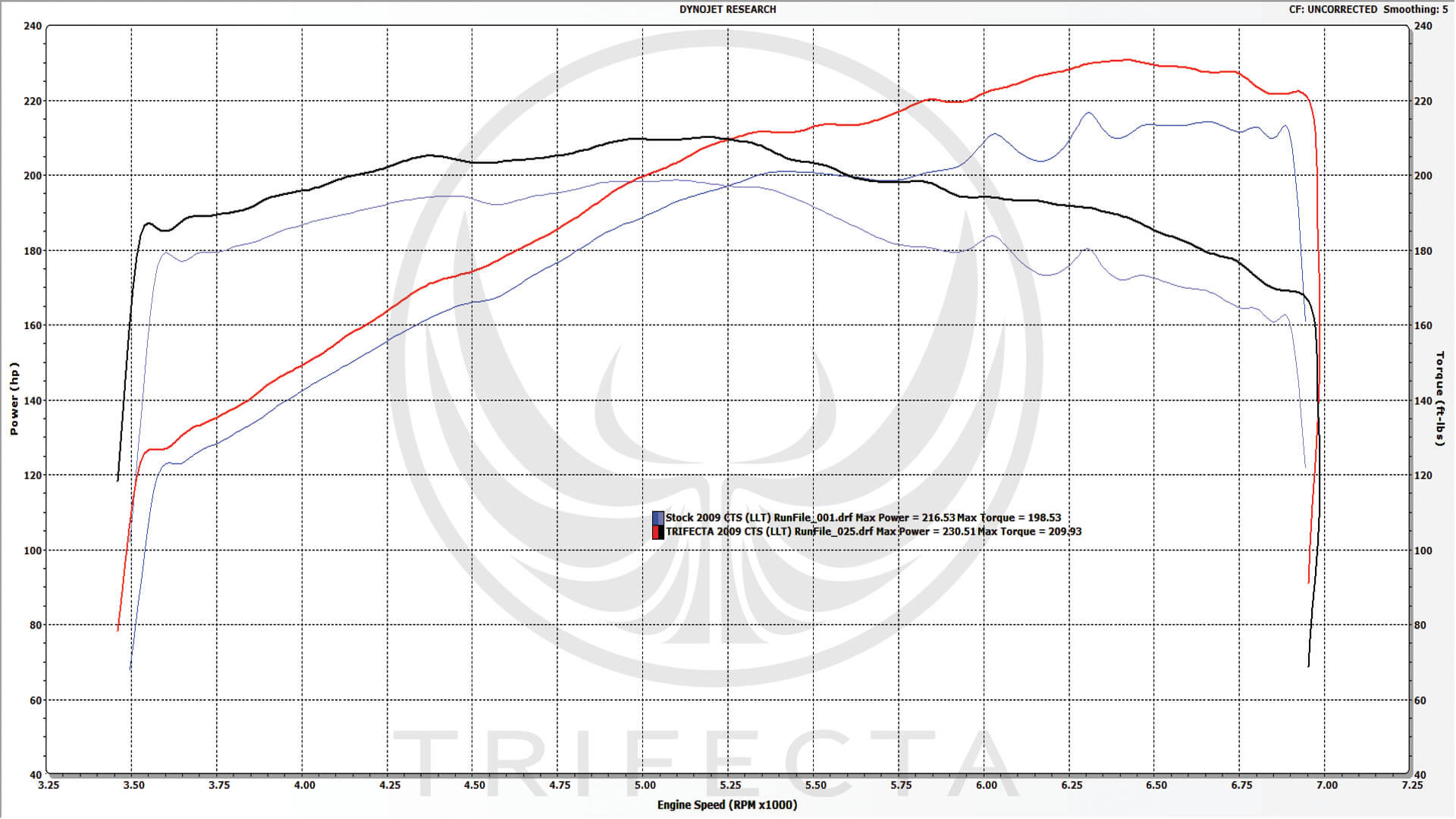 Specific gains of up to: +23WHP @ 6180rpm +20ft-lbs @ 6180rpm Peak vs Peak gains of up to: +14whp +11ft-lbs TRIFECTA Advantage+: